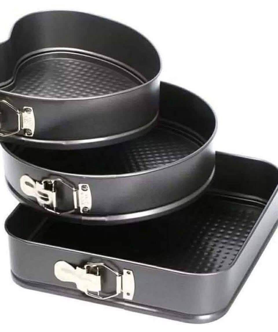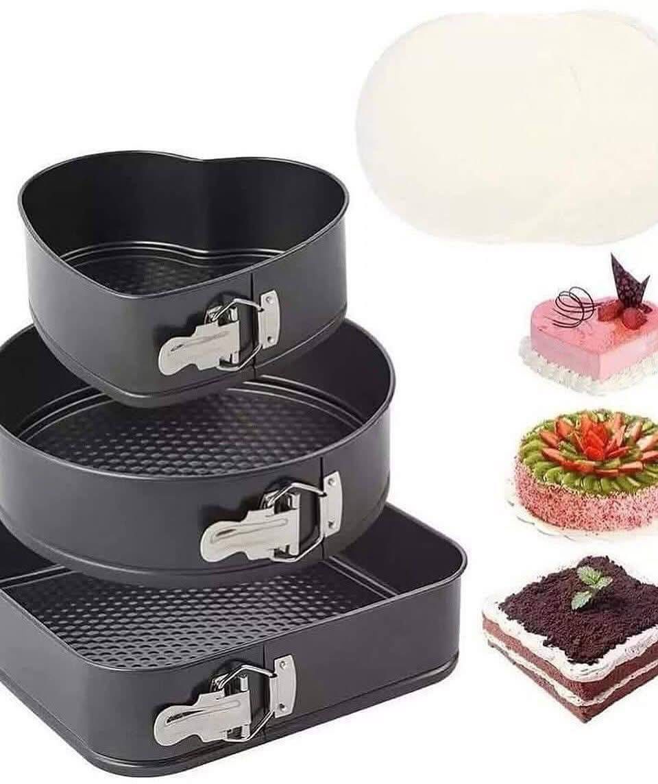🎂 طقم صواني تشيز كيك كلبس تيفال – 3 قطع (مدور • مربع • قلب) ❤️